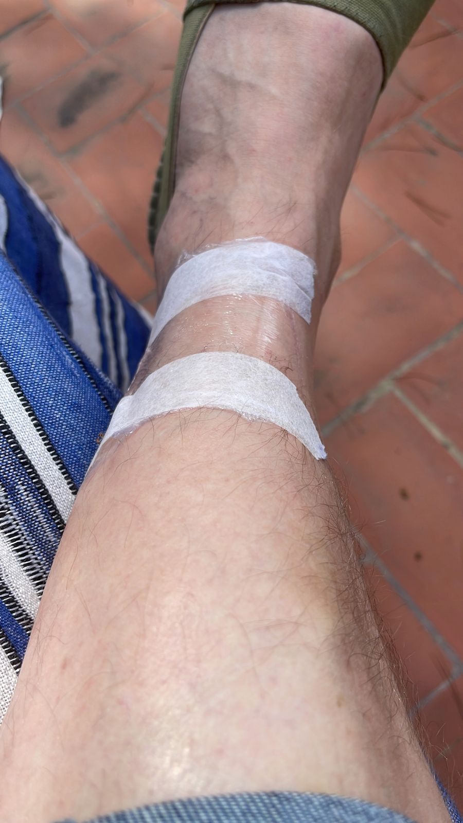 Eine gemütlich Chillecke war schon immer der Wunsch. Auf der Frühstücksterrasse die Bambusliege durch ein Tagesbett ersetzt. Das ist groß genug, um auch zu zweit darauf zu chillen. Und die Gitarre und/oder Bongos haben zusätzlich darauf Platz. Je nachdem, was ich spiele, kann man auch wunderbar alleine darauf Platz haben :) Und am Vatertag gab es noch ein Tattoo an der Platja den Bossa von TheBlackDoorTattoo...